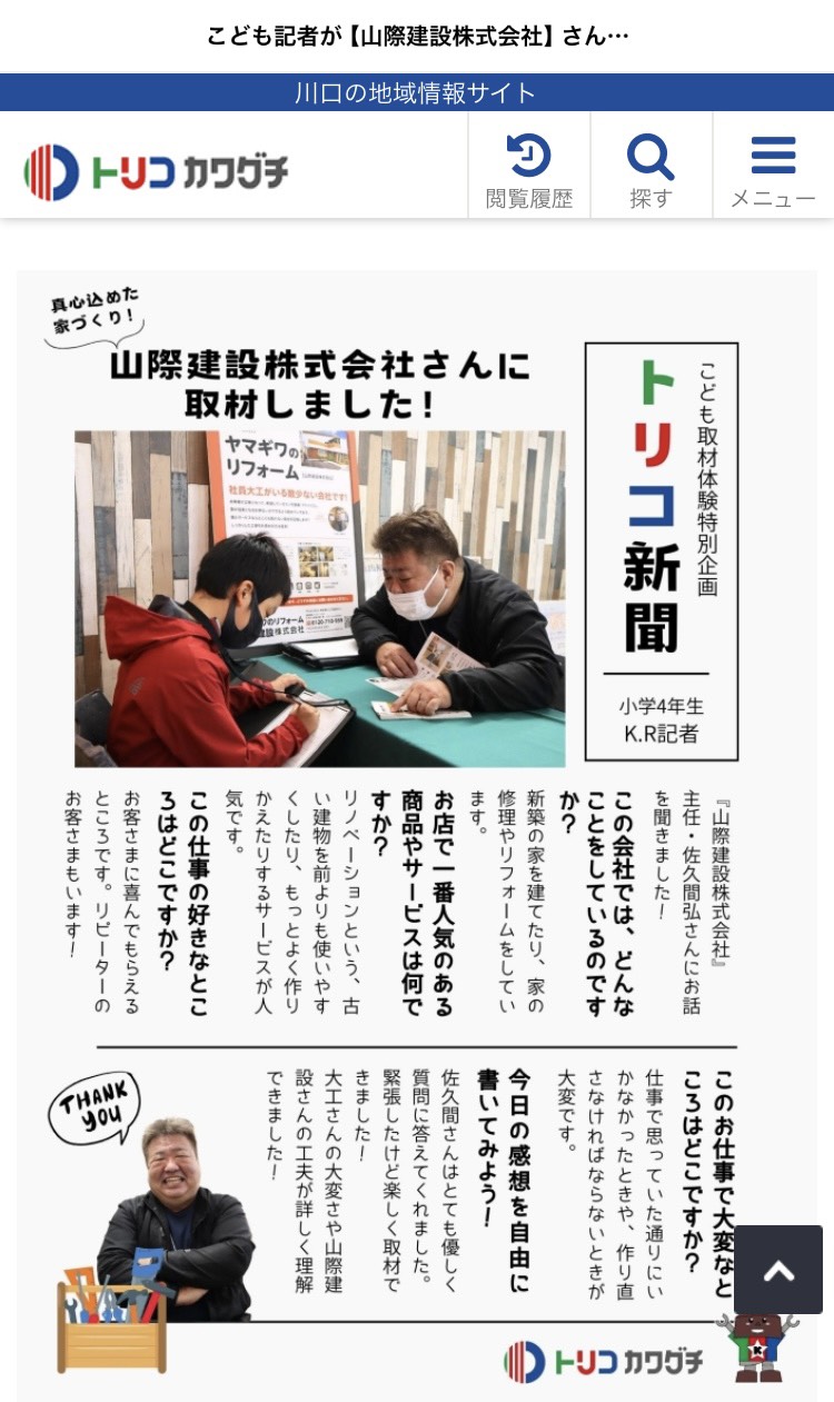 川口市市産品フェアに参加|子ども新聞の取材を受けました【山際建設】