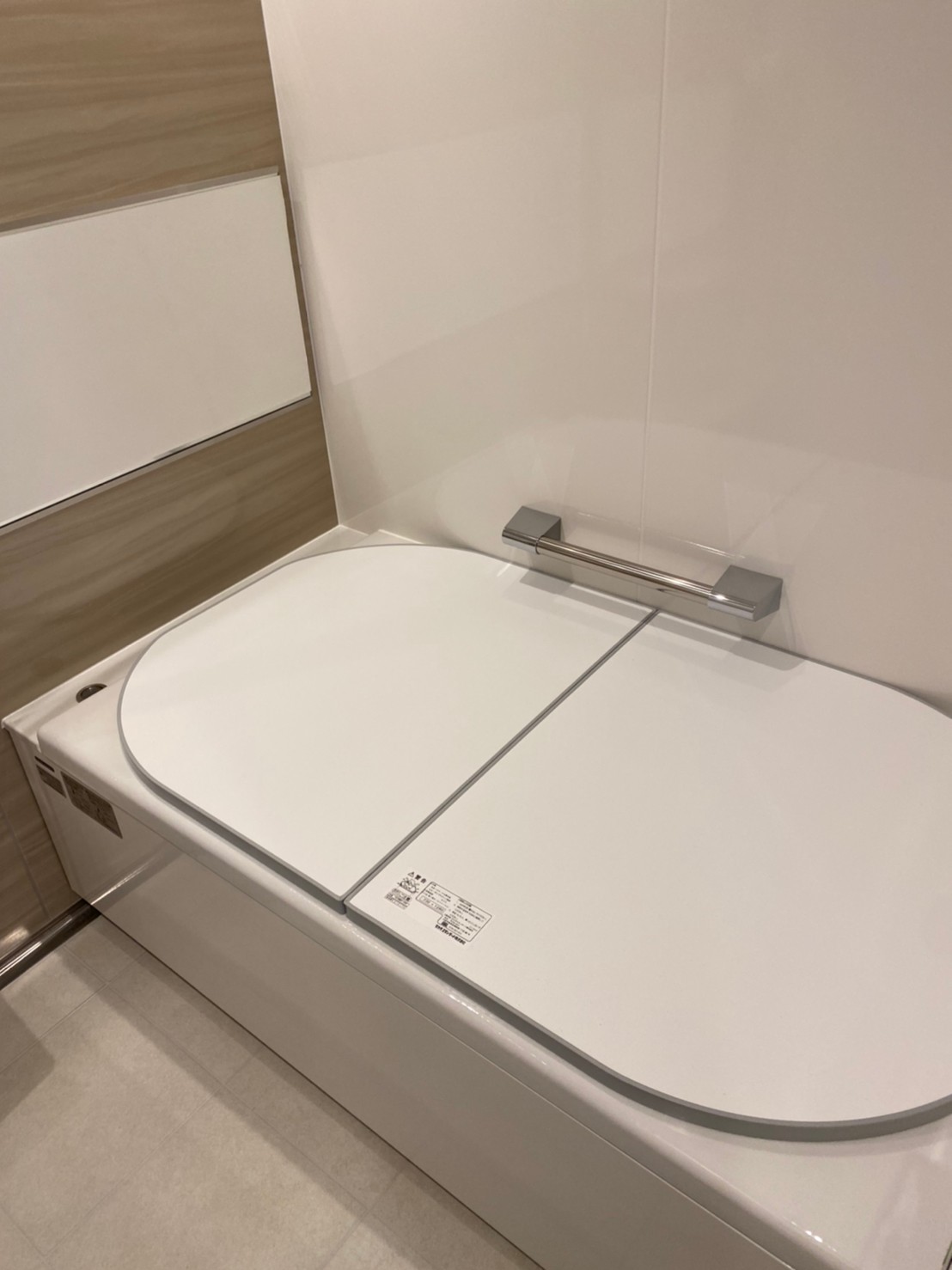 従来のユニットバスではデッドスペースになりがちだった梁や柱の凹凸に合わせて、ミリ単位でサイズオーダーが可能な『伸びの美浴室』。これにより、マンションの限られた浴室空間を最大限に有効活用し、広々とした洗い場と浴槽を実現しました。写真からも、以前よりゆったりとした洗い場が確保されているのが分かります。