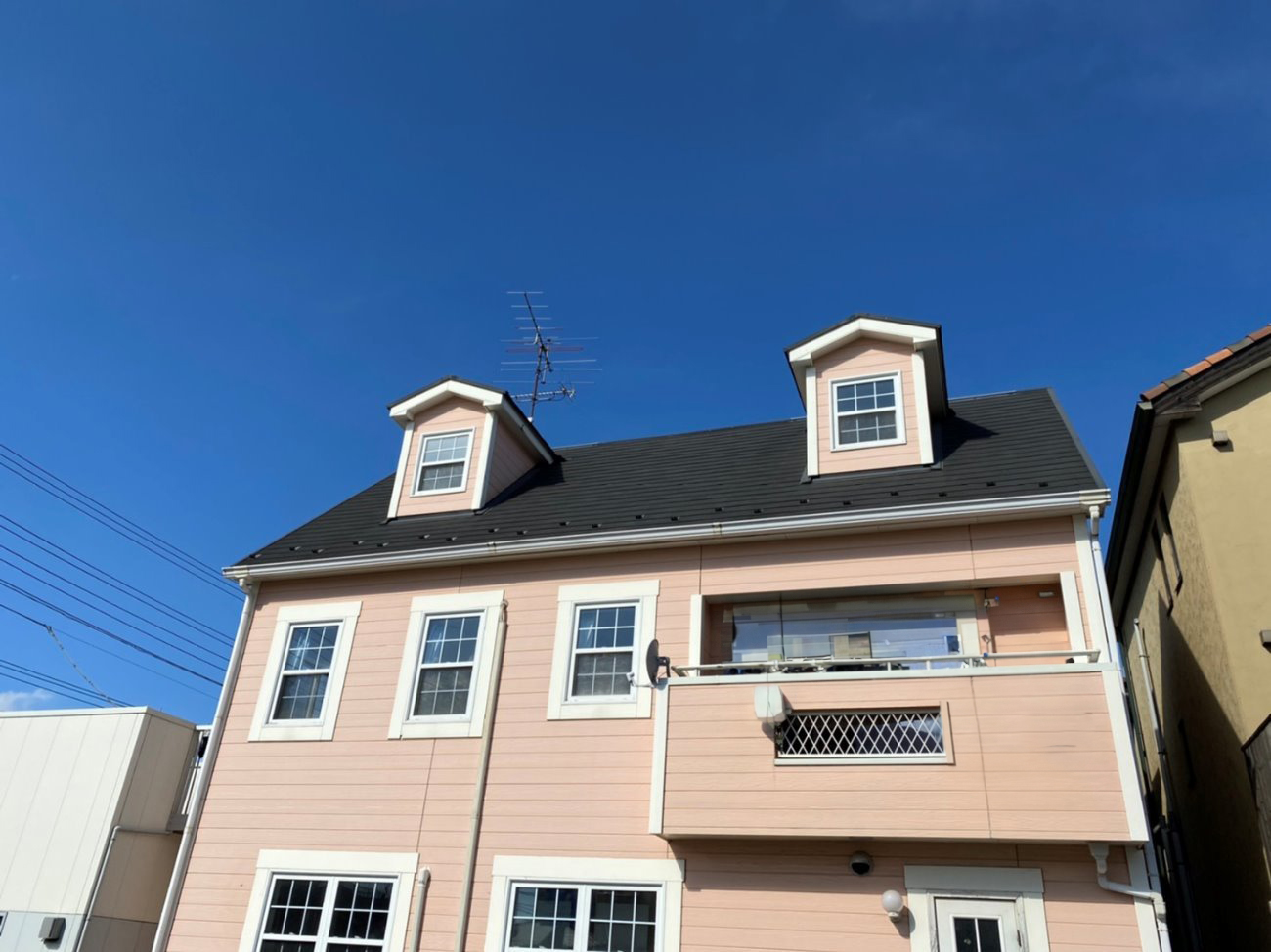 川口市で外壁塗装・塗り替えなら山際建設へ。ピンク色の外壁を爽やかな水色に。