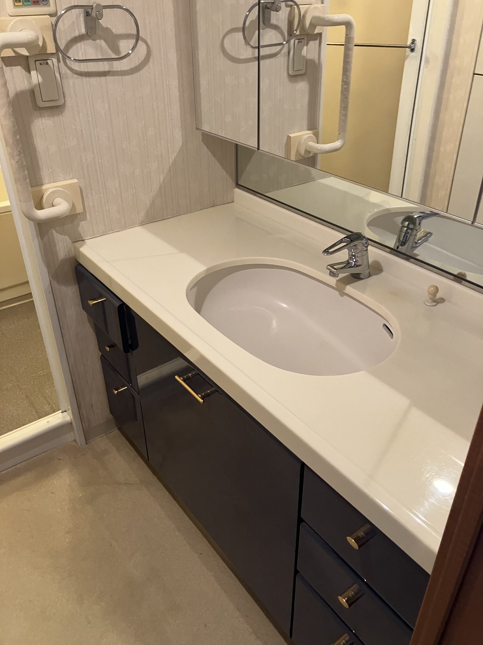 既存の洗面台を撤去後、タカラスタンダード【 リジャスト 】を設置しました。