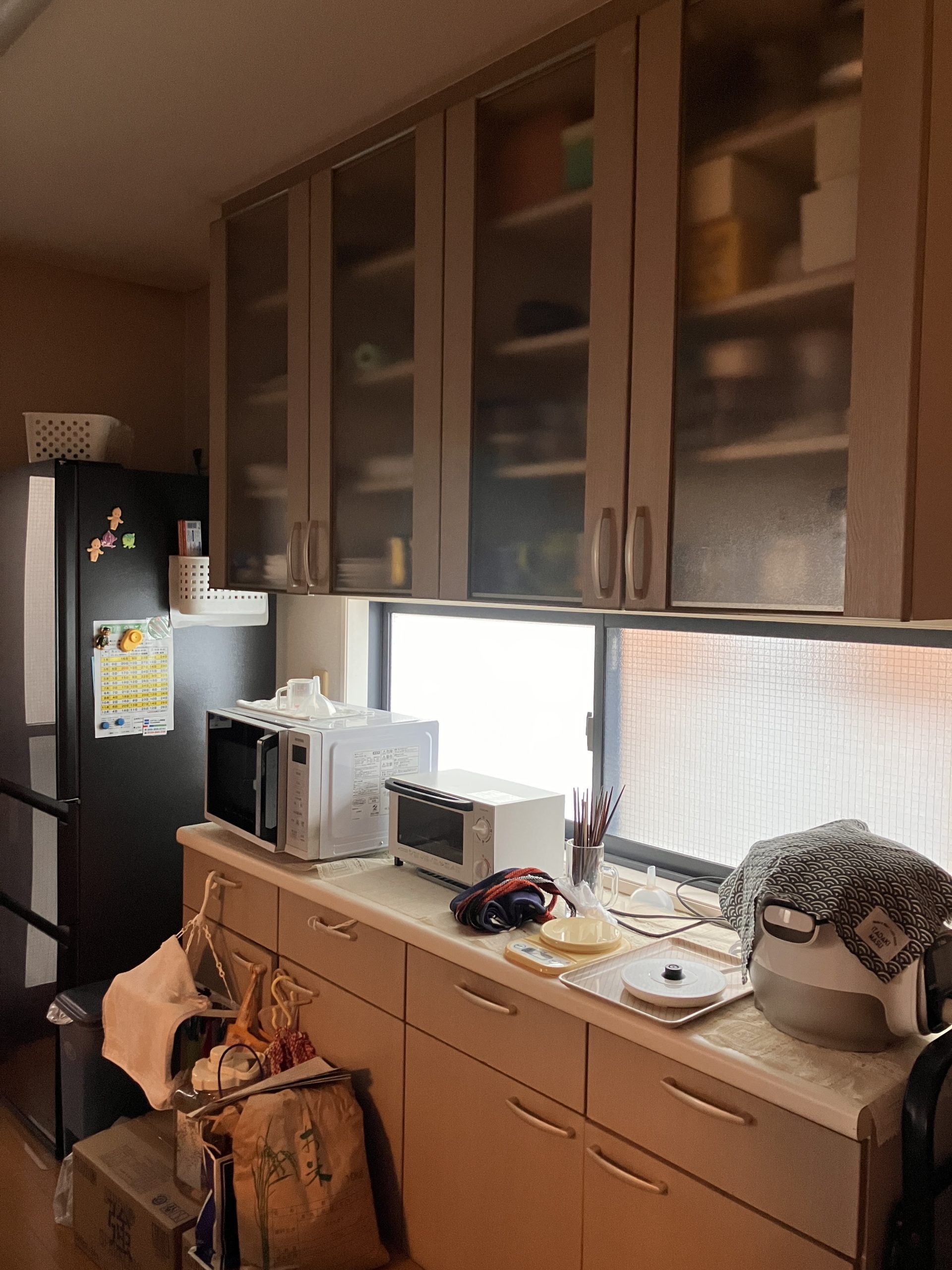 また、キッチン背面にはカップボードを設置し、収納力と作業効率をさらに向上。