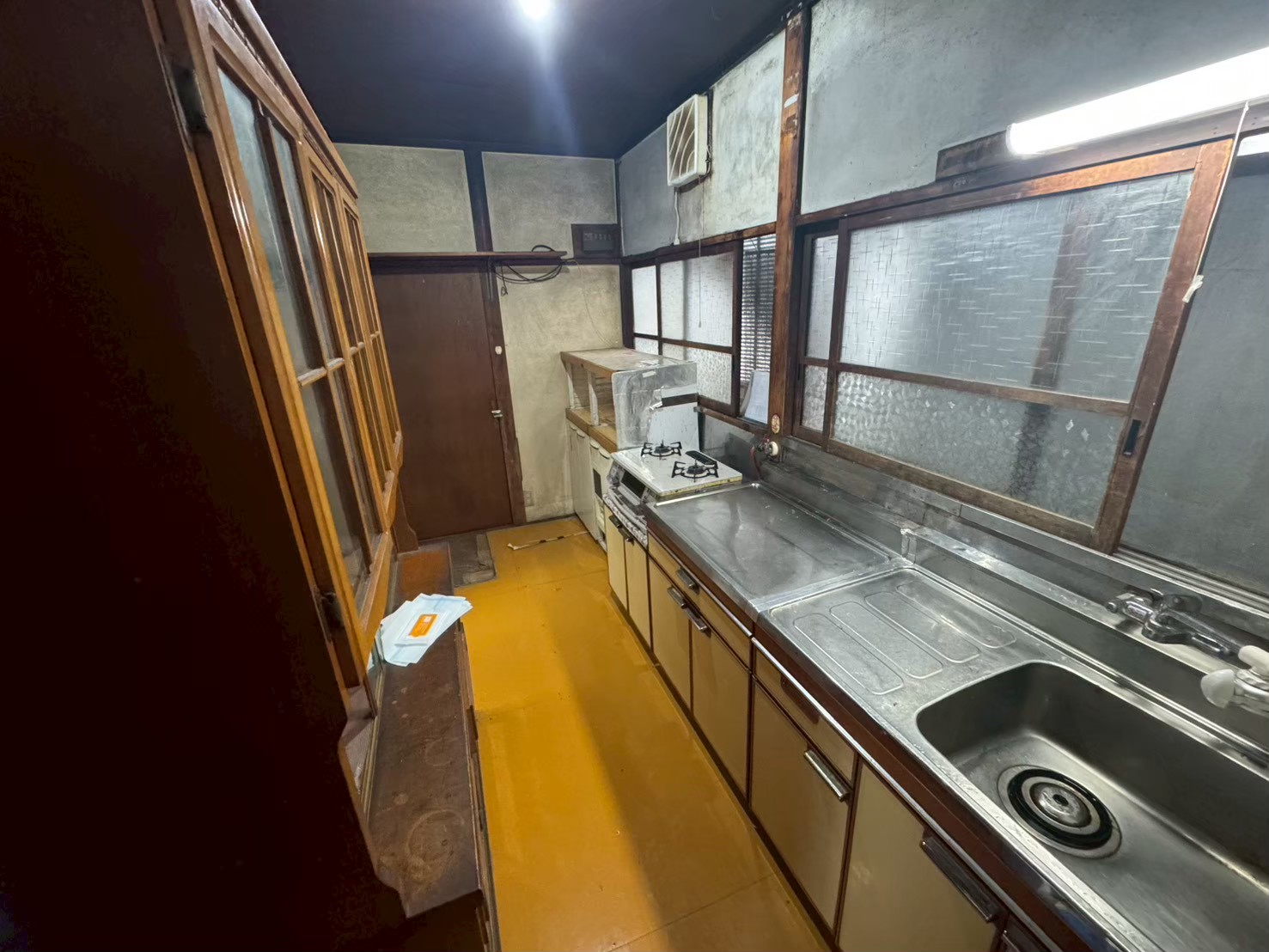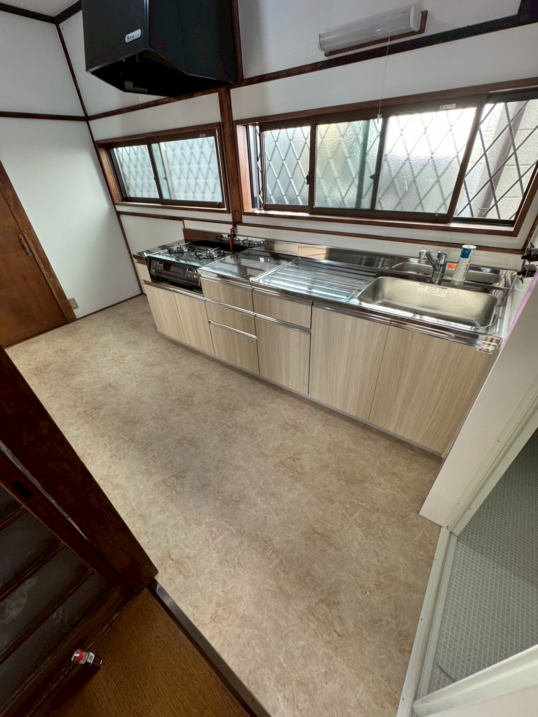 ワンド製の流し台・調理台・コンロ台を組み合わせたキッチンを設置。